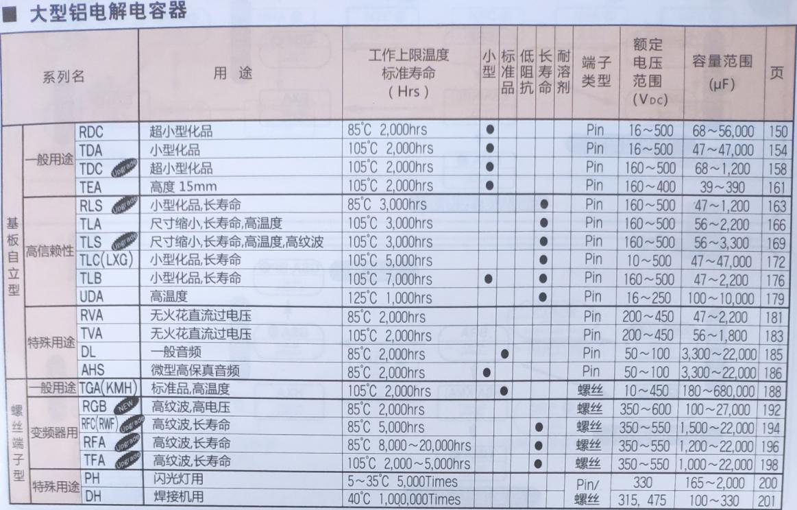 大型鋁電解電容產(chǎn)品一覽表如下圖