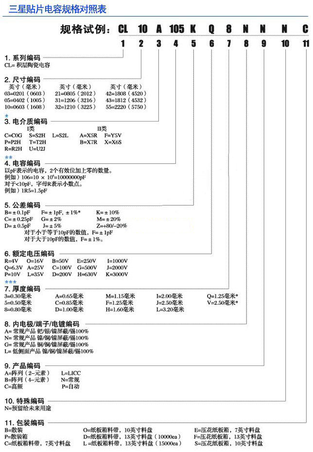 三星貼片電容命名規(guī)則識(shí)別圖