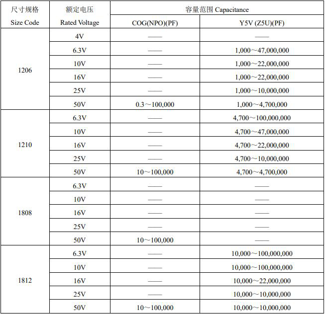 風(fēng)華貼片電容參數(shù)選購(gòu)圖表如下