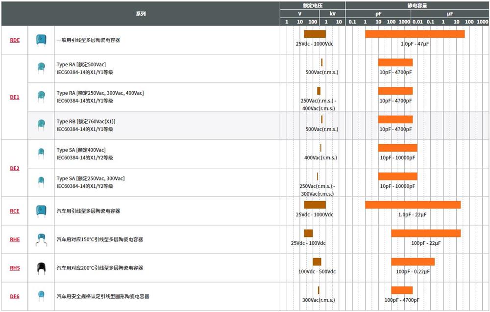 村田電容器主要分為:陶瓷電容器 (引線型)     陶瓷電容器 (SMD)