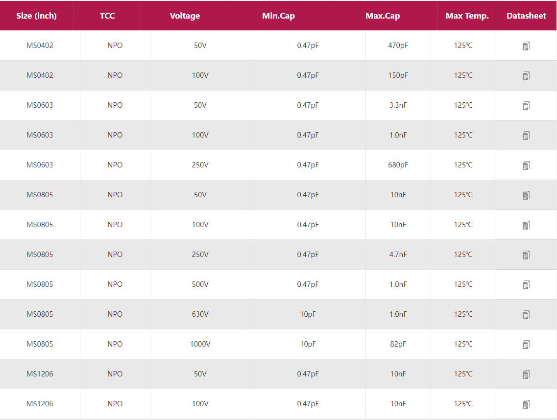 信維軟端子電容 產(chǎn)品型號:0201 0402 0603 0805 1206 1210